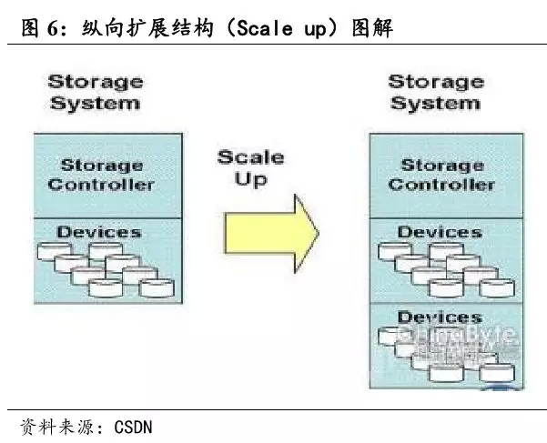 简而言之,纵向扩展结构类似于在原有的设备上添加内存,或者用更大存储量的设备来替换原有设备,这将涉及数据前期的测算或者后期数据 的迁移从而增加企业成本。而横向扩展结构更类似于建立一个新的机器 或者设备,并将其和原有设备进行连接以达到扩充效果,从真正意义上让用户实现按需购买。无论是纵向还是横向结构,均为一种架构概念,不仅仅运用于存储,对于数据库和其他功能都具备一定的意义。
