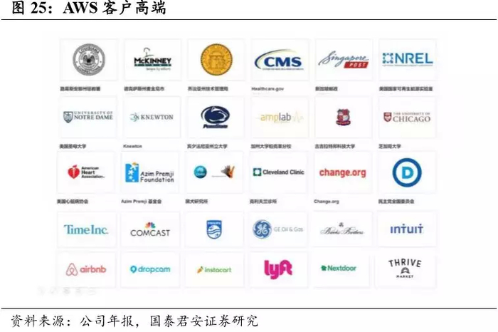 亚马逊 AWS 的客户群体已经从初期的创业公司发展到企业级的客户以 及政府机构等。政府和金融类客户一度被认为最不可能使用公有云,但 美国市场已经在发生变化。NASA、Capital One 已经成为 AWS 的客户, 花旗、高盛等大投行在与谷歌云尝试合作,已经有超过100家政府部门的开始用 AWS 的AWS GovCloud。