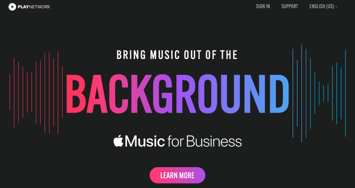 「Apple Music for Business」是苹果面向商家的音乐授权服务,官网显示其合作方是 PlayNetwork,这是全球最大的商用音乐供应商之一,星巴克也是他们的客户。