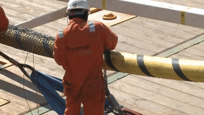 工人们正在铺设海底光缆