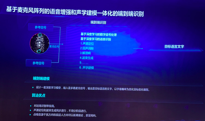 “今天我保守报一个30%以上的性能提升,很保守。未来这个技术会再次大幅刷新人们对远场语音的认知。我自己的判断是,三年以内远场语音技术的识别率将达到近场识别率,因为有了这个技术,远场识别问题基本可以得到解决,这是一个很大的跨学科创新。”