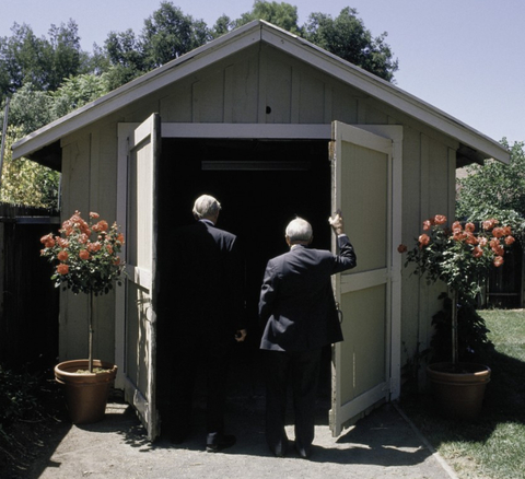 帕卡德(左)和比尔·休利特在1989年的一个仪式上再次参观了他们公司诞生的车库