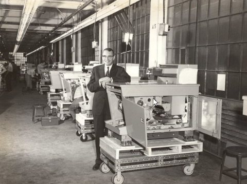 施乐创始人乔·威尔森在流水线上组装了该公司标志性的914复印机