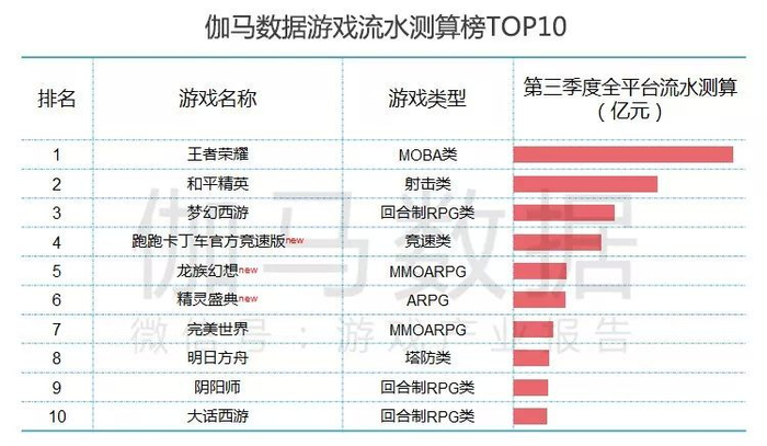 同样来自伽马数据的最新报告显示:三季度,国内全平台流水测算TOP10中,网易进入了三款。分别是排名第3、第9的、第10。