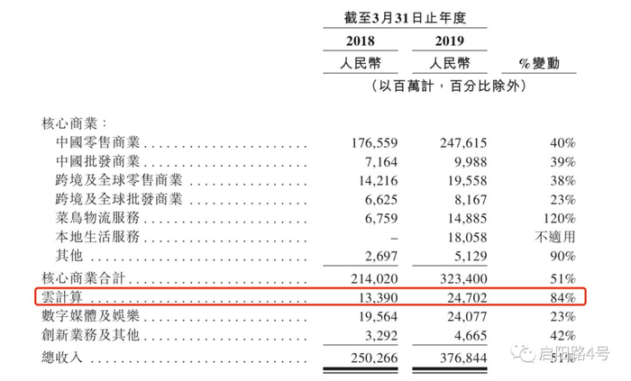 这也是四大板块中业务增速最快的板块,2019年财年云计算收入为247亿元,较去年增长84%,收入增长主要来自客户平均付费的增长。