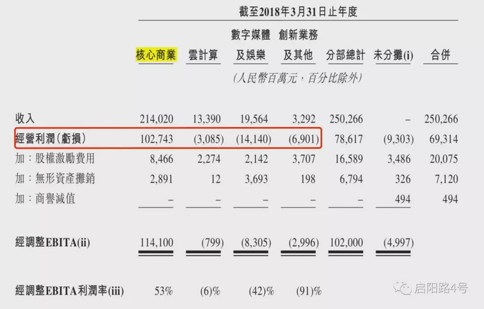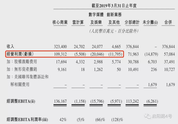 图注:从2017财年至2019财年,云计算、媒体及娱乐、创新业务三个板块经营利润出现亏损