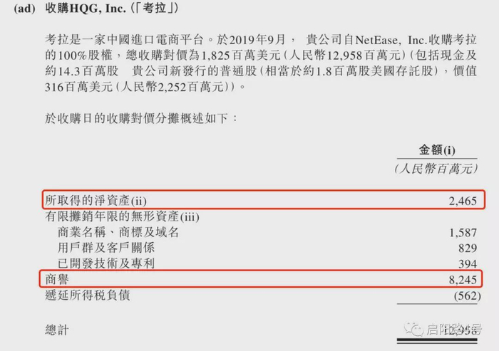 考拉的净资产仅为25亿元,但阿里付出的商誉为82亿元,以3.2倍于净资产的溢价收购考拉。招股书中写到:「此次收购产生的商誉来自考拉与阿里巴巴的业务整合、汇聚的人才及其在中国进口电商的知识及经验预期带来的协同效应。」