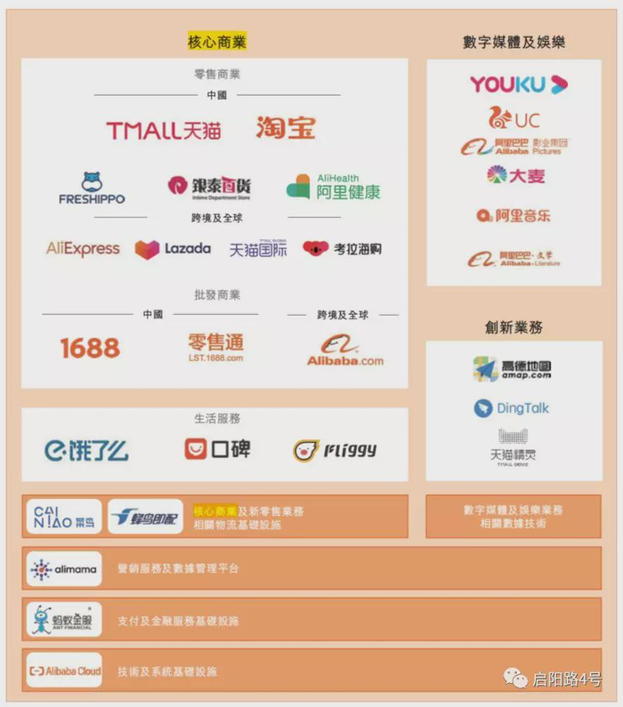 图注:阿里四大业务板块一览(核心商业、娱乐、云计算、创新业务)