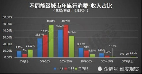 三四线城市中,每年旅行花费占总收入五分之一以内的人群,高达93%。