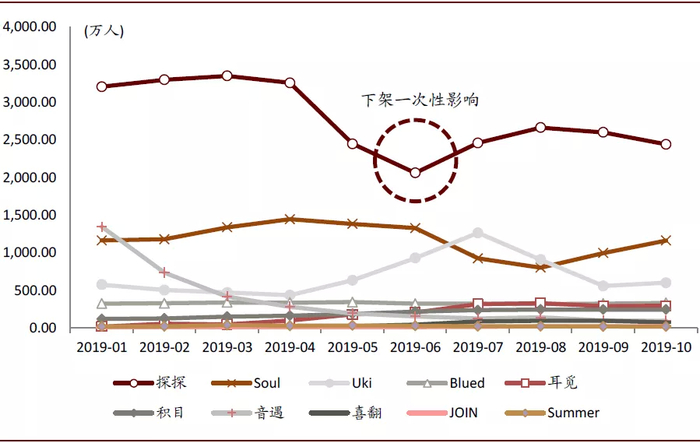 图表: 探探月活大幅超出可比产品,Soul紧随其后
