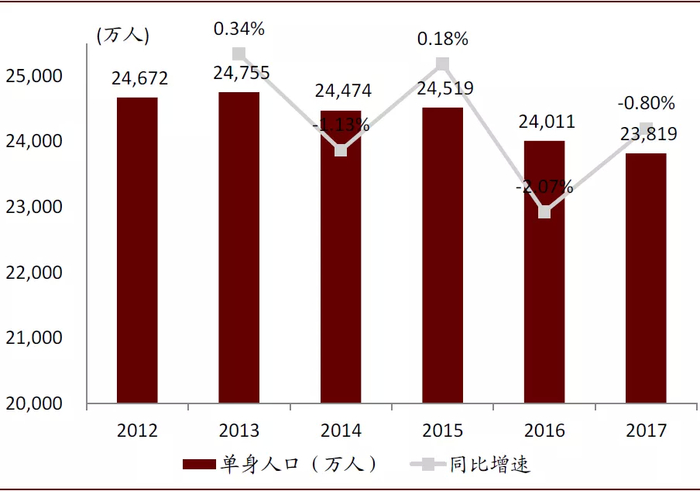 图表: 中国单身人口数量近年来稳定在2.4亿左右