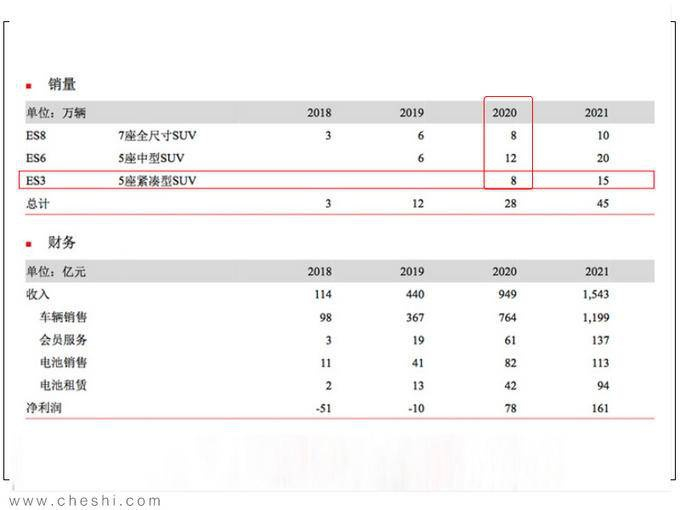蔚来此前计划于2019年发布ES3,并预计该车2020年销量目标为8万辆,2021年将提升至15万辆,占公司总销量的1/3,成为蔚来汽车旗下最热销的产品。该车定位与奥迪Q3同级别,进一步降低蔚来纯电动产品入手门槛。不过今年已接近尾声,从蔚来发布的官图来看,发布ES3已无实质性可能。