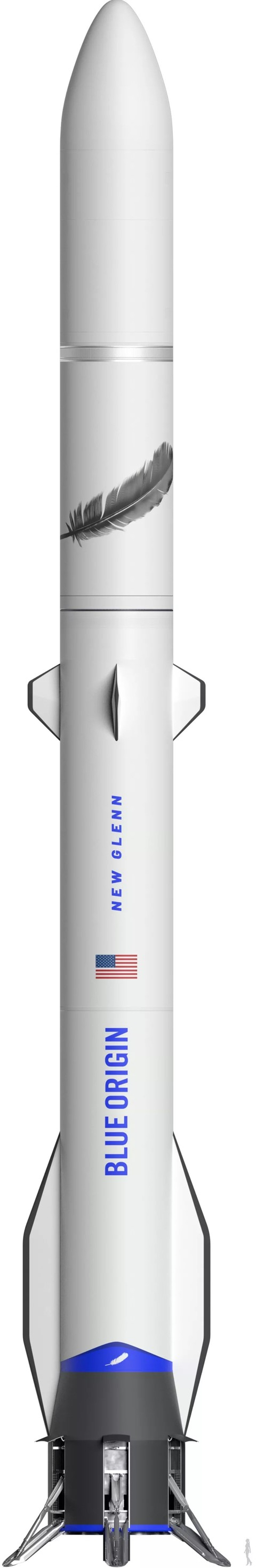 另一款轨道级火箭正在研制中(新格伦New Glenn,采用液态甲烷+液氧BE-4发动机,第一级最大推力1746吨,第二级真空推力290吨,LEO运力45吨,GTO运力13吨,计划2021年首飞)。