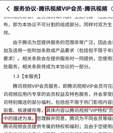 根据协议,腾讯视频可根据“运营需求”修改VIP会员在付费后的权益,包括但不限于额外点播,“通知”会员即可生效。