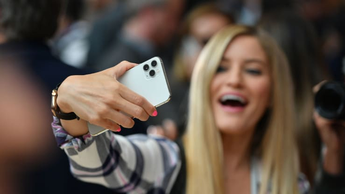 2019年9月10日,在美国加州库比蒂诺的苹果总部,一名女子在苹果产品发布会上试用新款iPhone 11 Pro