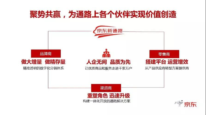 四年前京东这样的线上巨头开始涉足线下,其实会让品牌商和传统渠道担心:京东会不会影响到品牌商多年建立起的全国线下渠道体系?而新通路很清楚自己的定位,“新通路始终贯彻‘打价值战不打价格战’的原则指引。”郑宏彦表示,新通路做的事是以消费者为核心,链接品牌商、渠道商、零售商,致力于解决各方的需求和痛点,而不是打破原有体系与大家争利。