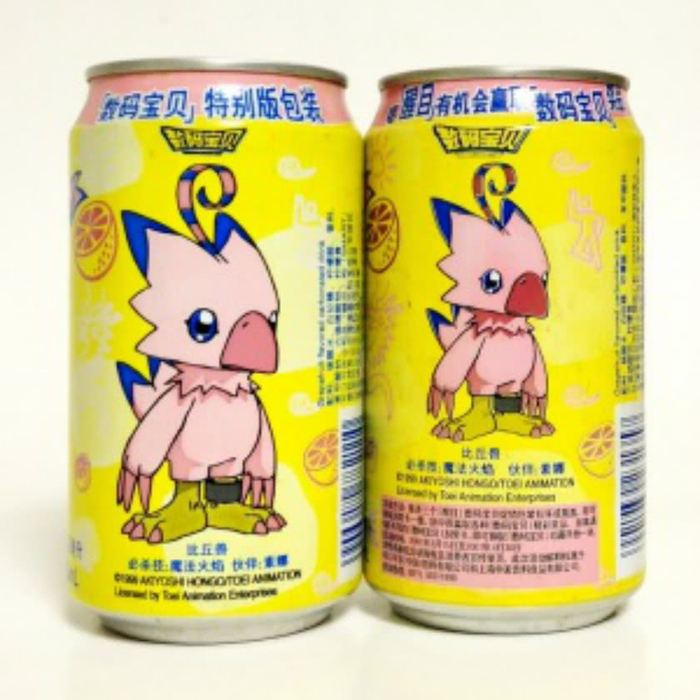 醒目汽水早期与“数码宝贝”的联名。