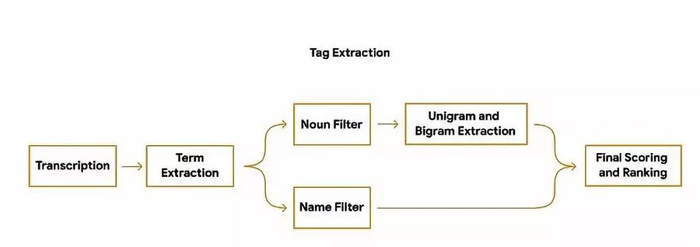 为了能够在转写结束就生成标签建议,程序在转录过程中就会对单词数量、重要性进行分析;同时也会将识别出的专有名词转为大写。然后使用设备端的词性标注器来根据语法标注每一个词的词性,检测出用户更容易理解和记忆的词。最后利用决策树的方式生成词语等分,并输出排名靠前的词语作为标签。