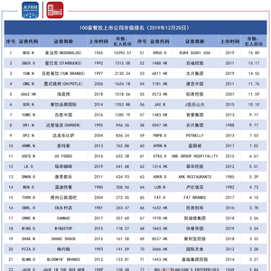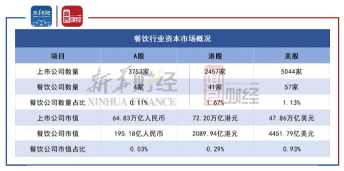截至2019年12月20日收盘,港股和美股餐饮行业市值分别仅占总市值的0.29%和0.93%。