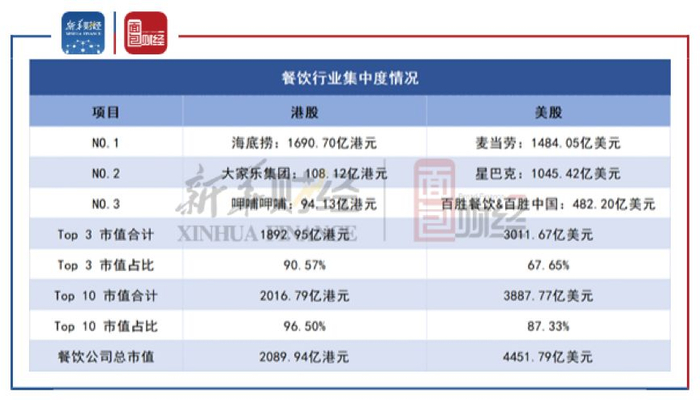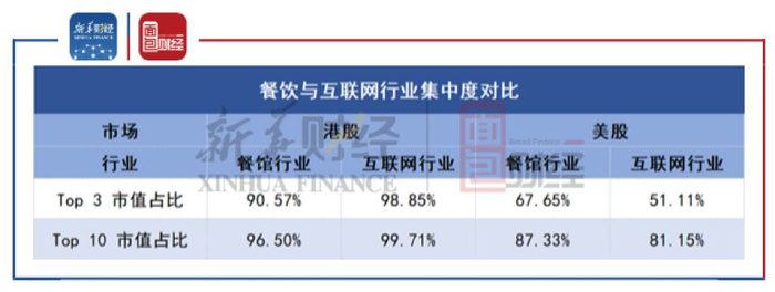 有个流行的说法,互联网是一个“赢家通吃”的行业。从上市公司的角度观察,餐饮行业的市值集中程度与互联网行业相比并不逊色。