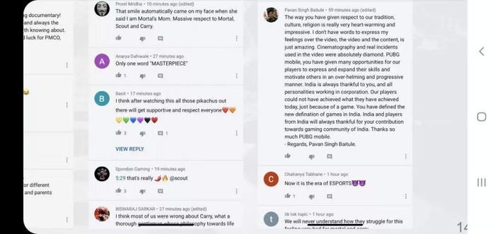 注意到Mortal的经历之后,电竞团队给他和其他几名主播拍摄了一部纪录片,讲述《PUBG MOBILE》给他们带来的改变。纪录片上线当天,它的观看量超过了40万,并获得了上万条回复。