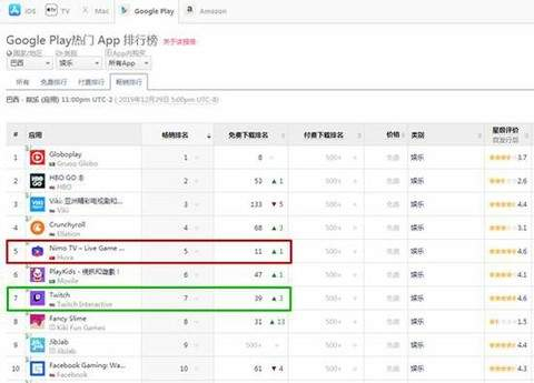 但从 12 月起,Nimo TV 就已被甩出巴西 Google Play 畅销总榜 Top100。