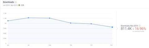 笔者查看了下目前成绩最好的 Nimo TV 在巴西的月新增下载数据,发现 11 月该 App 在巴西的下载量为 811400 次,较十月下降了 16.96%。