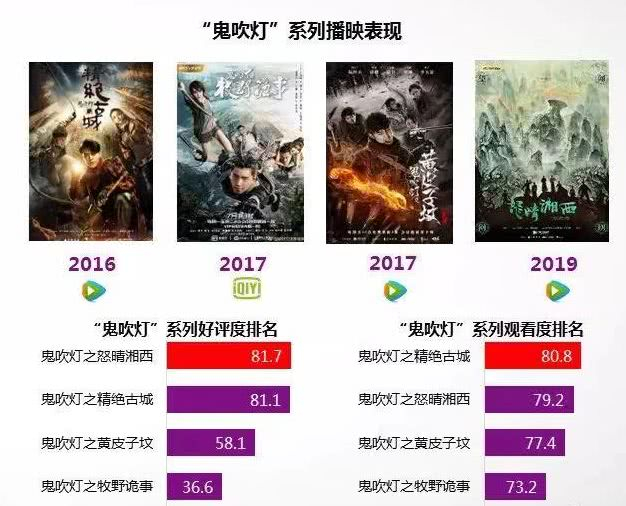 单个项目开发之外,为了延续IP生命力,各平台开始打造季播剧和多内容形式的概念,但能保证品质的项目并不多。截至目前,腾讯视频多季播出的剧集达22部。以颇受好评的《鬼吹灯》系列为例,腾讯视频出品制作的《鬼吹灯之精绝古城》和《怒晴湘西》是该系列中的佼佼者。同时,口碑剧《全职高手》也将开发第二季。可见,在系列化开发上,腾讯视频也是有口皆碑。