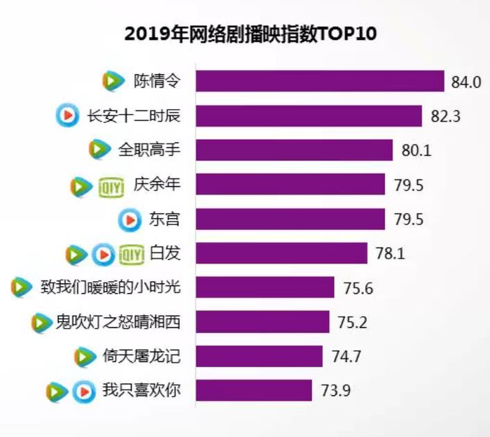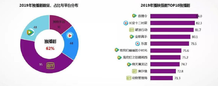2019年腾讯视频的自制内容表现无疑也十分亮眼。从2019年播映指数TOP 30网剧看,腾讯视频覆盖17部,TOP 10中腾讯视频更占据8席,自制独播大剧《陈情令》更是打造了今年最大的网剧爆款。