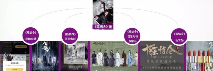 除影视化开发,跨界的全产业链布局一直是行业痛点。但这个痛点随着《陈情令》的出现得以缓解。针对影视化内容,《陈情令》开启了会员之外的付费超前点播机制,为一直以来靠广告、会员两条腿走路的视频网站提供了新思路。与此同时,《陈情令》OST专辑热销、演唱会火爆线上线下,剧集本身的影响力实现多路径持续蔓延。