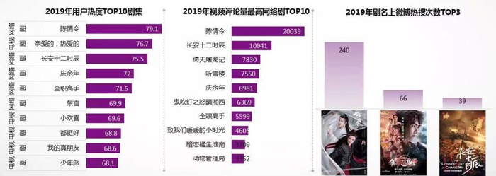 2019年媒体热度TOP 10网剧中,腾讯视频独占6部。同时,根据2019年用户热度TOP 10剧集显示,TOP 5中腾讯视频播出的剧集占据4席,表现亮眼。