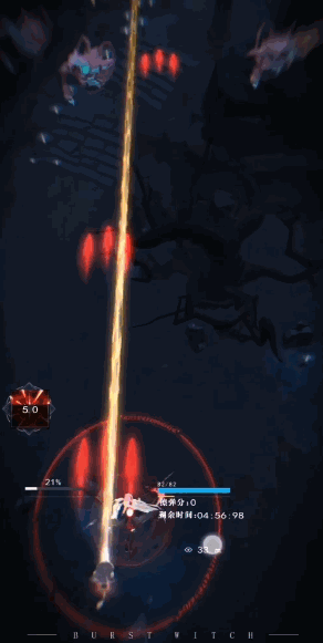 战斗中,玩家通过触控来操纵角色移动进行攻击,每位魔女都有着独立的生命值以及能量值。当玩家被子弹击中时便会扣除相应的生命值,当生命值归零便会阵亡,玩家所携带的全部魔女全部阵亡时战斗便失败。而能量值则可以在战斗自动积蓄,蓄满时可以自动释放技能。值得一提的时,游戏中每一个副本只有5分钟给玩家攻克,时间到了也会判定为挑战失败。