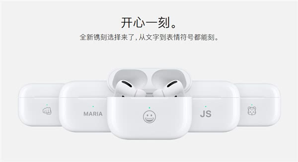 自定义表情符号的雕刻方案适用于所有AirPods产品,包括AirPods Pro、AirPods,该服务仅苹果官网提供。