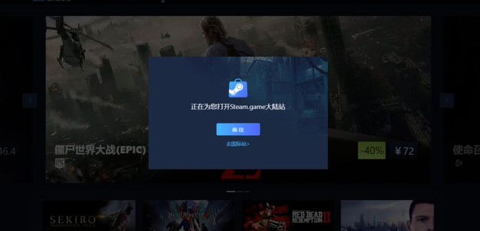 打开这个网站之后,进入界面上会显示,该网站为Steam.game大陆站,网站有Steam的logo,装修风格来看还是非常正规的,如果不是小编早有防范,没准真可能会相信这就是正版官网。