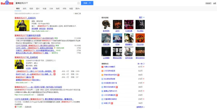 为了一探究竟,小编试着打开了这款搜索引擎,并输入“赛博朋克2077”。