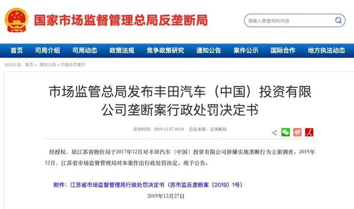 在判罚通知中对于丰田中国的违法行为给了详细的描述: