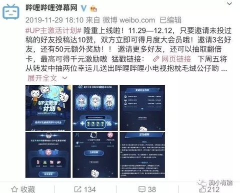 1,活动上,在站内发起促up主生产活动,在微博上做转发抽奖为站内导流