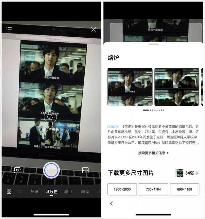 当然,用户的娱乐化需求也能得到充分满足。生活中经常出现这样的场景,看到人们在网上分享的书籍、漫画、影视剧截图,却苦于不知其名。这时除了等待他人解答,用户还可以选择自己寻找答案,用百度 App 直接识图。