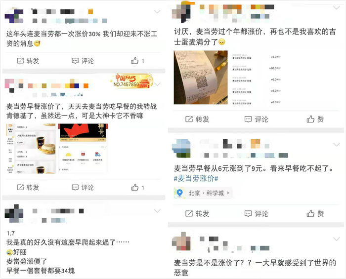 因原料等成本提升,麦当劳部分产品涨价,6元早餐变9元
