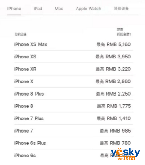 唯一没有减少的设备是MacBook Pro,Mac Pro,Mac mini和“Apple Watch”系列1、2和3代。另外,还有一款iPhone的以旧换新折抵价没降反升了,这就是iPhone7,从985元上升至1000元。