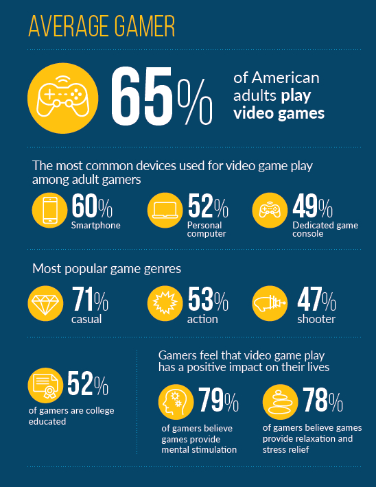 手机视频观看量更是以每年百分之百的速度在增长。与音乐和视频相比,游戏仍然是较为小众的娱乐方式。ESA报告显示,2019年虽然有65%的美国人玩游戏,但其中只有大约21%的玩家每周都会打开游戏,剩下有一大部分是每年只玩几次或者是只在特定场合玩游戏。