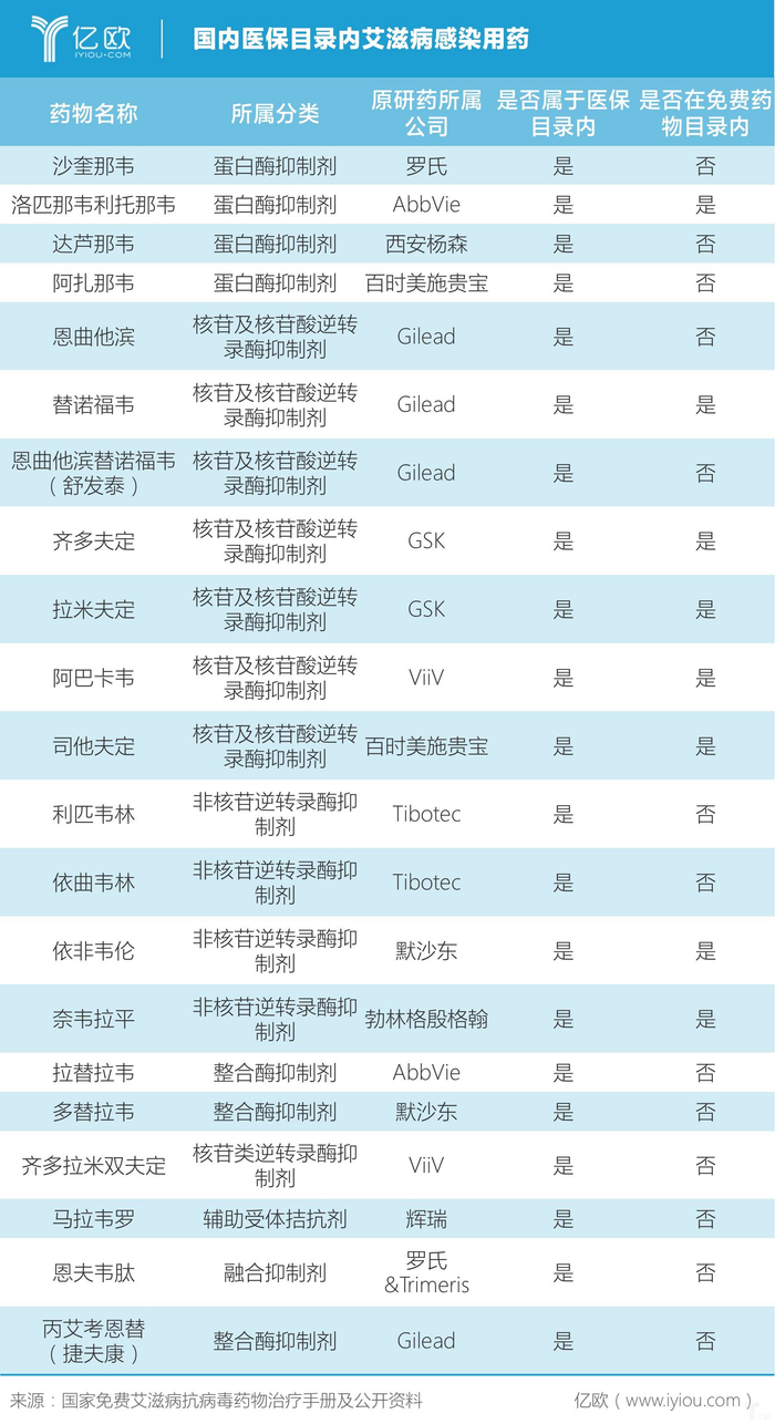 这一方案源于国家从2003年实行的“四免一关怀”政策,受益于政策,确诊艾滋病患者能够获得免费提供的抗病毒治疗药物。根据国家免费艾滋病抗病毒治疗手册及2019年医保目录,当年共有8款药物被纳入国家免费用药,在国家医保范围内的艾滋病药物达20种。