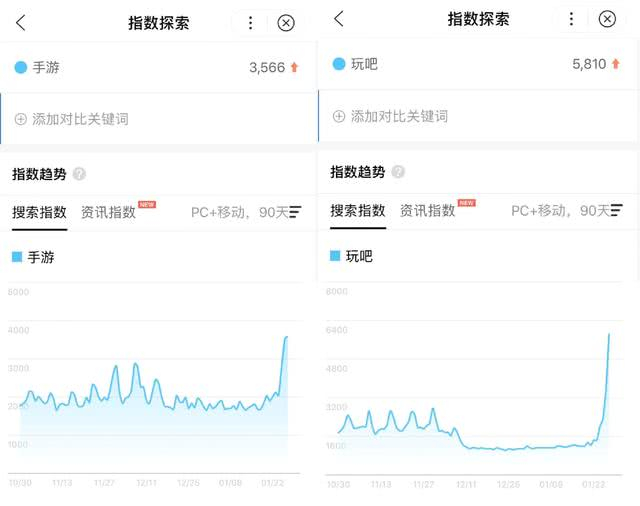 响应相关部门减少出行的号召,许多家庭每年春节例行的“聚会”也从线下搬到了线上,以别开生面的线上群体娱乐模式,展现出另类的佳节团圆景象。不少网友与亲友组团玩手游、棋牌等线上游戏,“一人开房,全家共享”——虽然没能见面,但线上相聚同样增进感情,弥补了平日因工作忙碌没能陪伴家人的遗憾。百度指数显示,“手游”、“玩吧”等关键词热度在春节期间同比、环比都出现大幅度增长,体现出国民春节聚会方式的改变。