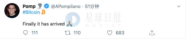 2月2日,Twitter已推出比特币标签Emoji,用户只要输入#Bitcoin就可以自动出现。具体图样如例图中Morgan Creek创始人Anthony Pompliano推文所示。