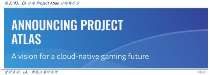 3)游戏内容制作方。云游戏有望帮助游戏内容制作方摆脱硬件设备的制约,带来全新的想象空间。EA公司推出名了Project Atlas的云游戏平台,育碧推出了《刺客信条:奥德赛》云版,探索云游戏时代的产品类型。