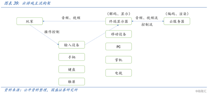 伴随5G逐渐成熟,5G杀手级应用云游戏不断升温。云游戏是一种以云计算和串流技术为基础的在线游戏技术,其游戏的逻辑和渲染运算都在云端完成,处理后的把结果编码成音频流、视频流,通过网络传输给终端,终端则将用户的操作信息传输给云端,进行实时交互。云游戏支持用户使用随身携带的移动设备随时随地享受3A级游戏大作的极致体验,打通大型游戏的终端壁垒,而其中延迟的高低将直接影响云游戏的用户体验,因此网络显得尤为重要。5G的逐渐成熟,云游戏最关键的网络问题迎刃而解。
