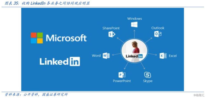 收购LinkedIn获取职场社交流量入口,助力拓展企业级市场。微软于2016年以262亿美元收购LinkedIn,为其进一步拓展企业级市场迈出了坚实的一步。截止到2019年12月,LinkedIn在全球200多个国家拥有超过6亿用户。LinkedIn强大的职场社交流量正好与微软强大的toB端产品及其定位契合,为Azure、Dynamics 365及Office 365等企业级产品引流,帮助微软更快速精准的拓展企业级市场。