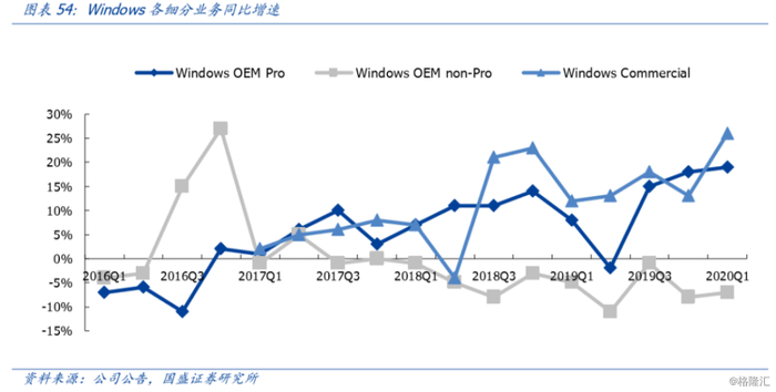 Windows已成公司的用户和流量入口。Windows操作系统在全球范围内拥有接近20亿的用户数量,无数的企业个人使用装有Windows操作系统的电脑进行办公和娱乐。随着公司战略重心向云迁移,Windows更大程度上成为公司的用户和流量入口,助力公司拓展其他业务,而Windows稳定的市场份额将继续为公司带来稳健的收入。