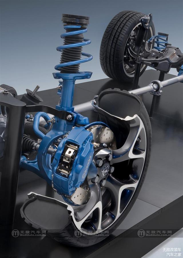 图:大马力前驱车最恼人的扭力转向,同样也是OPC需要解决的问题。OPC工程师开发出了HiPerStrut的新型麦弗逊悬挂系统,其原理和结构与福特福克斯RS的Revoknuckle相似。