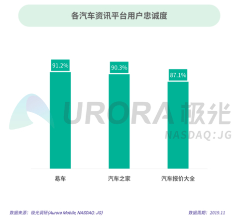 根据极光的统计结果,易车和汽车之家的每10位用户中,9位有意愿继续使用该平台;汽车报价大全用户的继续使用率在八成以上。